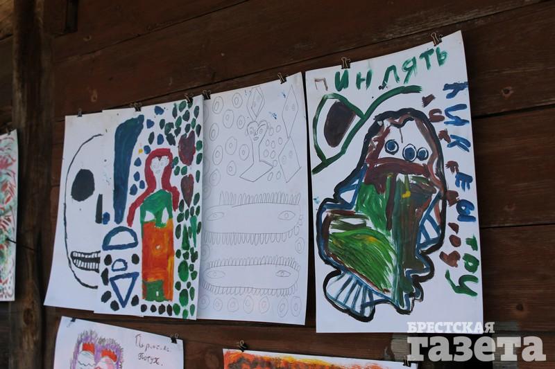 Фестиваль стартовал с открытия выставки детского рисунка «Чернобыль», которую собрали организаторы — театр «Крылы халопа». В экспозиции оказались и работы пациентов психоневрологического дома-интерната №3 в Минске, которые привезла арт-терапевт Дарья Яскевич. С одним из художников, Михаилом Буличем, можно было познакомиться и пообщаться.