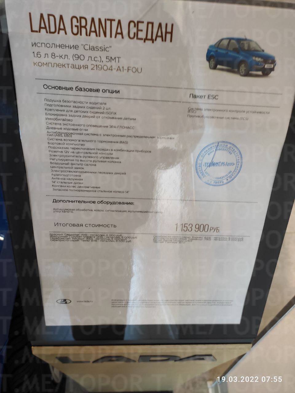 Например, подписчик одного из российских телеграм-каналов сфотографировал 19 марта обновленные цены на автомобили LADA в одном из дилерских центров. LADA Granta Седан в комплектации Classic стоит 1 153 900 российский рублей. А LADA Vesta Седан в комплектации Luxe EnjoY Pro стоит 1 767 500 рублей.
