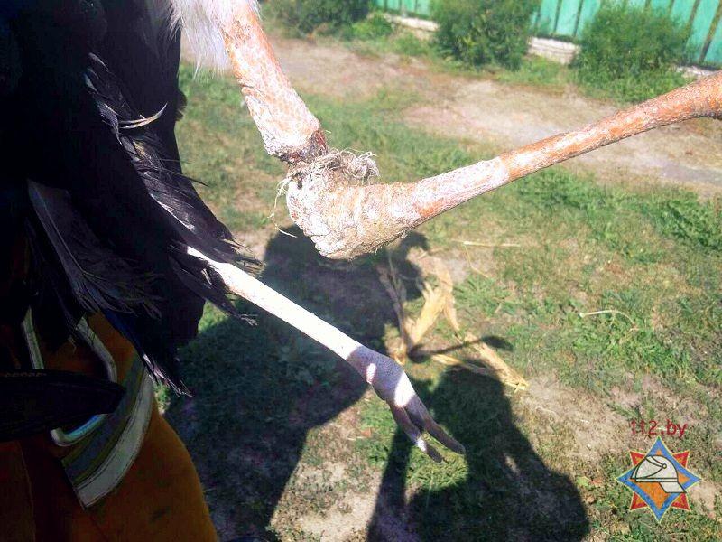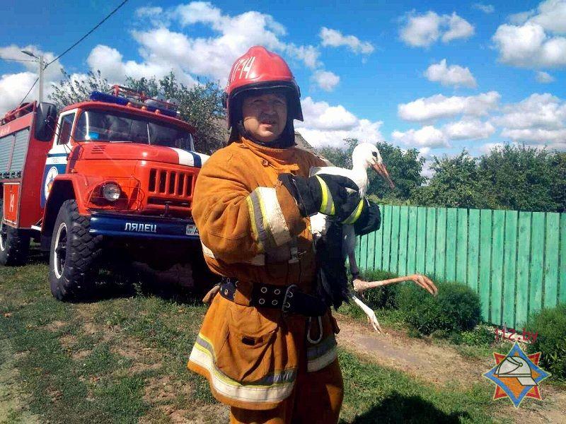О том, что в деревне Городец требуется помощь аисту, на прошлой неделе в центр оперативного управления Столинского РОЧС сообщили местные жители.