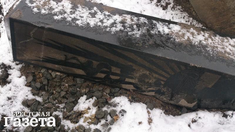 На углу улиц Карла Маркса и Гоголя в Бресте длительное время находился пустырь. Сейчас ООО «Научпром» роет там котлован под строительство дома. Из-за шквалистого ветра одно звено металлического ограждения, опоясывающего стройплощадку, упало, и 16 марта горожане смогли увидеть, что у края котлована лежат надгробия и кресты. Все это было извлечено ковшом экскаватора из недр земли.