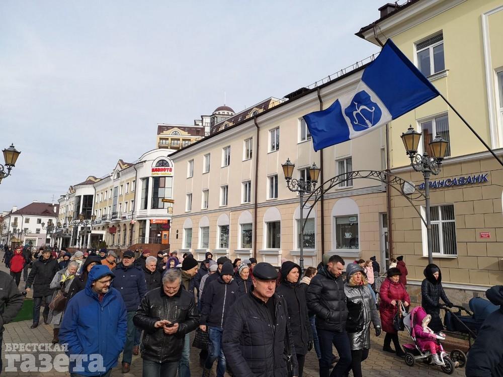 После кормления голубей противники завода по традиции прошли по улицам Пушкинской и Советской к кинотеатру «Беларусь».