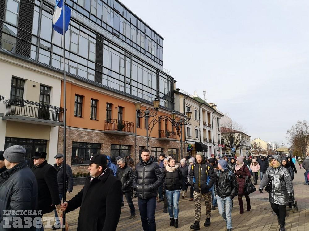 Более 100 человек вышли днем 16 февраля на площадь Ленина в Бресте, чтобы покормить голубей и тем самым в очередной раз показать, что они против аккумуляторного завода рядом с городом.