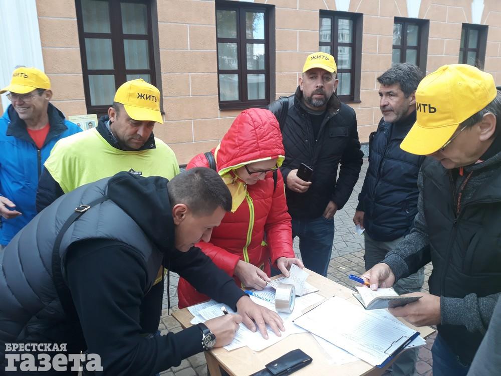 С 18 сентября сбор подписей в Бресте и районе начали инициативные группы активистов борьбы со строительством под Брестом аккумуляторного завода. Их легко узнать по желтым бейсболкам со словом «ЖИТЬ», желтым шарфам и майкам.