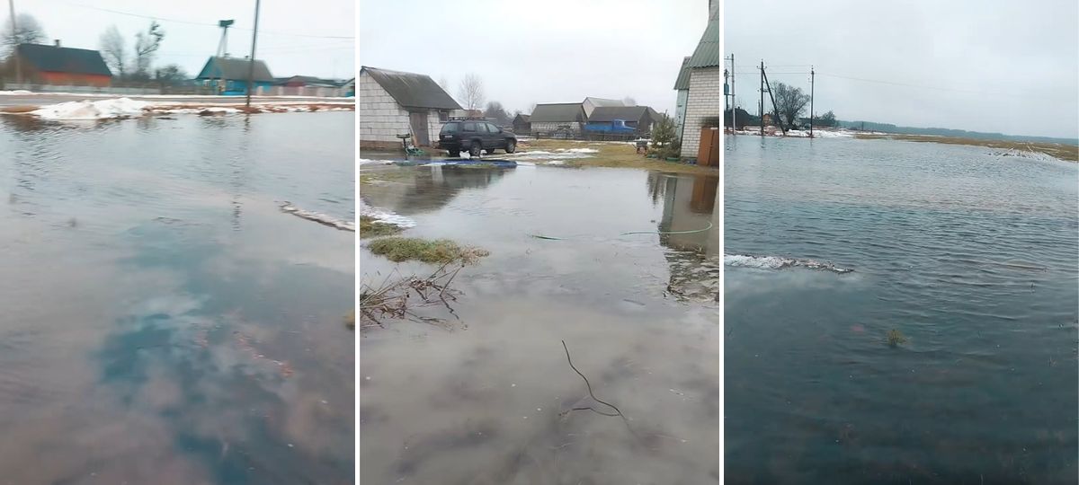 Житель Малоритского района показал в TikTok первые результаты начавшегося паводка. В радиусе ста метров сплошь вода, она подобралась и к его дому, и к соседним. В какой деревне снято видео, мужчина не уточнил.