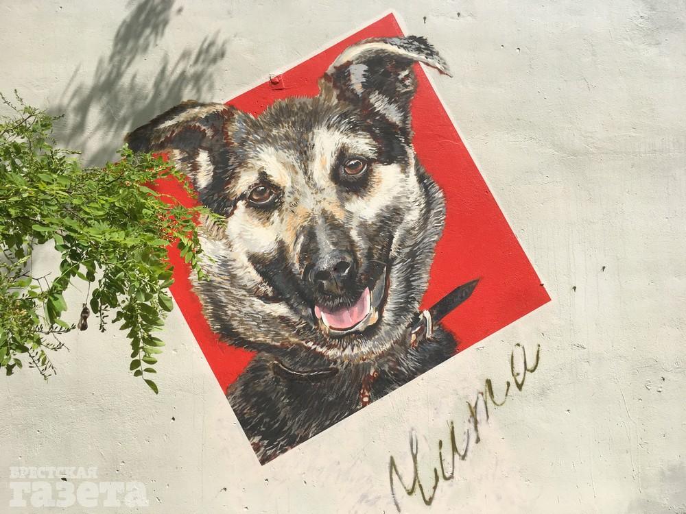 В центре Бреста появился стрит-арт с изображениями животных, спасенных от смерти. Его героями стали кошка Анфиса, собаки Чита и Белла.