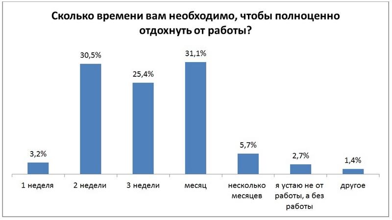Этим летом побудут на вакациях 56,6% респондентов. Каждый пятый еще не может с уверенностью сказать, удастся ли ему отдохнуть. Без отпуска останется каждый четвертый участник исследования.