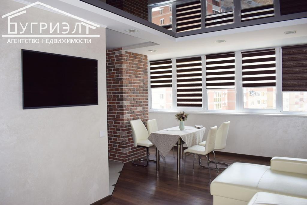 Общая площадь квартиры с лоджией составляет 104,1 кв. м, жилая — 34,1 кв. м, кухня-столовая — 47,1. Квартира с живописным видом из окон продается со всей мебелью и техникой.
