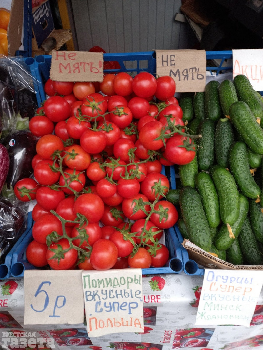 Активно продают на рыночных рядах и огородную зелень (1,5 – 2 рубля за пучок), свежий редис (6 рублей за килограмм), молодую капусту (3 – 3,50 за килограмм), кабачки (6 – 6,50 за килограмм), баклажаны (7 рублей за килограмм) и прочие сезонные (и не только) овощи и фрукты.