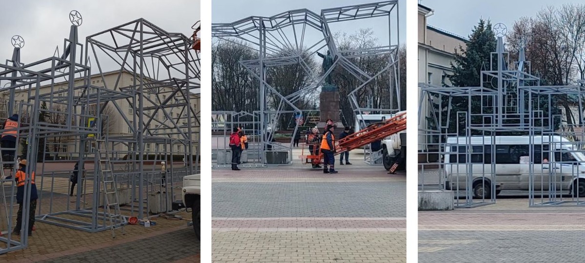 Сегодня, 27 ноября, на главной площади Бреста творится волшебство, пишет телеграм-канал Брестского горисполкома «Любимый Брест». На фото видно, как специалисты ДЭП монтируют грандиозную светодиодную конструкцию.