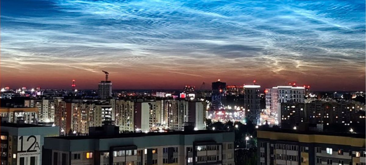 Ночью с 2 на 3 июля жители Бреста и других уголков Беларуси стали свидетелями редкого природного шоу — в небе появились серебристые облака. Они словно зависли над горизонтом, тонкими волнистыми лентами, будто нарисованными рукой художника, и подсвечивались неярким светом солнца, уже скрывшегося за горизонтом.