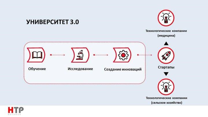 — Идея Университета 3.0 базируется на трех столпах — обучение, исследование и создание инноваций, — поясняет Денис Алейников, старший партнер юридической фирмы «Алейников и Партнеры», член Совета по развитию предпринимательства при президенте. — Во время учебы студенты будут создавать стартапы, которые были бы интересны экономике. Помогать им в этом будут резиденты ПВТ, а также специалисты из реального сектора. Получится такой межотраслевой и междисциплинарный брейнсторм.