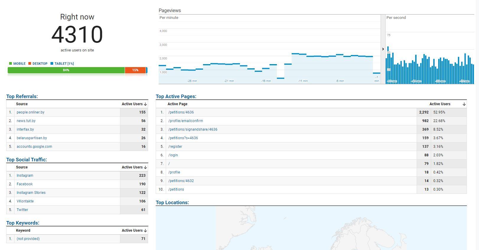 «Калі з тэлеграм-каналаў адначасова прыходзіць шмат людзей, часам сервер падае. Я меркаваў, што будзе вялікая колькасць наведванняў, таму павялічыў магутнасць серверу спачатку з 4 да 16 працэсараў, а пасля да 32. На такіх серверах звычайна працуюць нацыянальныя навінавыя парталы. І нават ён на хвіліну ўпаў. Я мусіў падняць сервер да 64 працэсараў — толькі тады ён стаў вытрымліваць», — цитирует nn.by основателя портала для сбора подписей под обращениями Владимира Ковалкина.