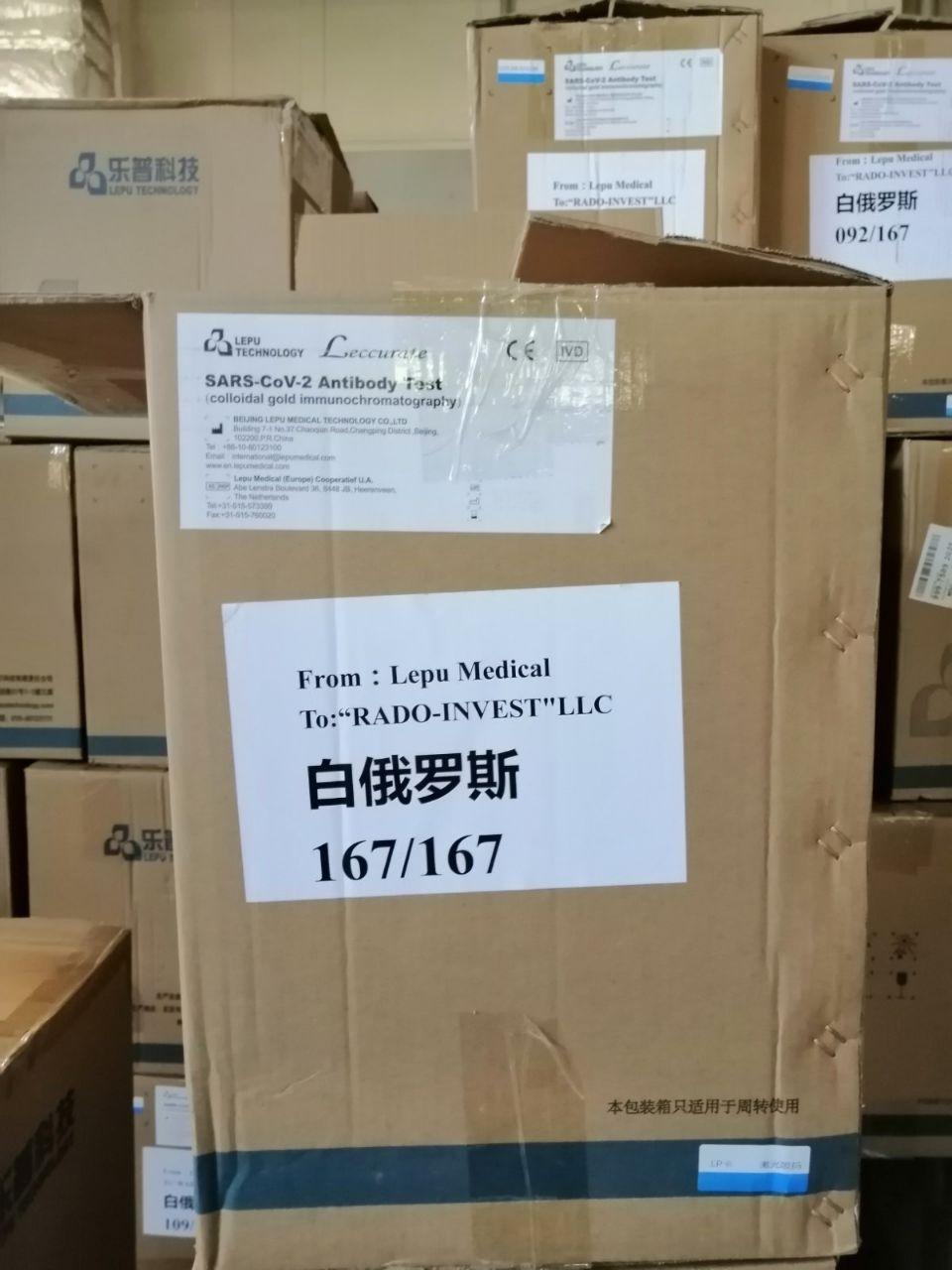 Отметим, что экспресс-тесты, которые прибыли в Беларусь в субботу 9 мая, уже отгружены для передачи учреждениям здравоохранения областей. Так, первые экспресс-тесты уже доставлены в Брестскую и Гомельскую области, 11 мая последние коробки были переданы в Гродно.