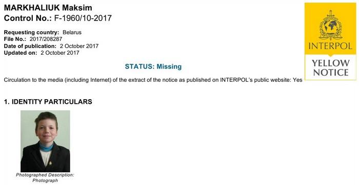 Как рассказал начальник Национального центрального бюро Интерпола Александр Петран, школьник находится в розыске на территории всех 192 государств-членов международной полицейской организации. Генеральный секретариат Интерпола издал уведомление с желтым углом – розыскной циркуляр, содержащий в себе полную информацию о пропавшем ребенке.