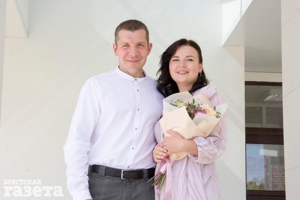 Брестчане Михаил и Ирина Кругликовы познакомились полтора года назад. Он — инженер-проектировщик, она — журналист, редактор отдела новостей «Брестской газеты». Пара расписалась в отделе ЗАГС Брестского горисполкома 1 июня.