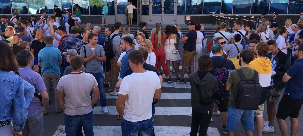 На забастовку вышли те, кто сегодня работает: режиссеры, операторы, — и те, кто на прошлой неделе написал заявление об уходе. Они стоят с плакатами «Я/мы за честные новости».