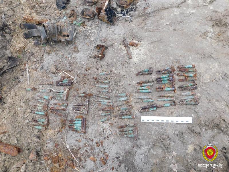В ходе дальнейшего осмотра следователь принял решение вызвать саперно-пиротехническую группу. В результате найдено 79 патронов, костные останки, а также фрагменты личных вещей. Предположительно, обнаруженное относится к периоду Великой Отечественной войны.