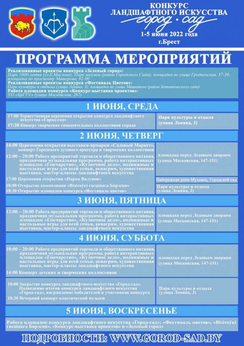 Конкурса ландшафтного искусства «Город-сад» пройдет в Бресте с 1 по 5 июня. С более подробной информацией можно ознакомиться на сайте www.gorod-sad.by.