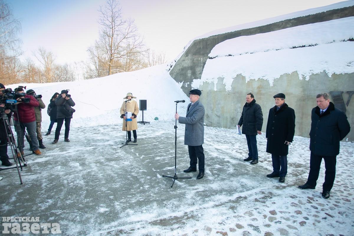 Крещенский мороз не помешал торжественной церемонии с участием министра культуры РБ Анатолия Маркевича и руководства города. Экспозиция создана в рамках проекта Союзного государства «Капитальный ремонт, реставрация и музеефикация сооружений Брестской крепости в мемориальном комплексе «Брестская крепость-герой».