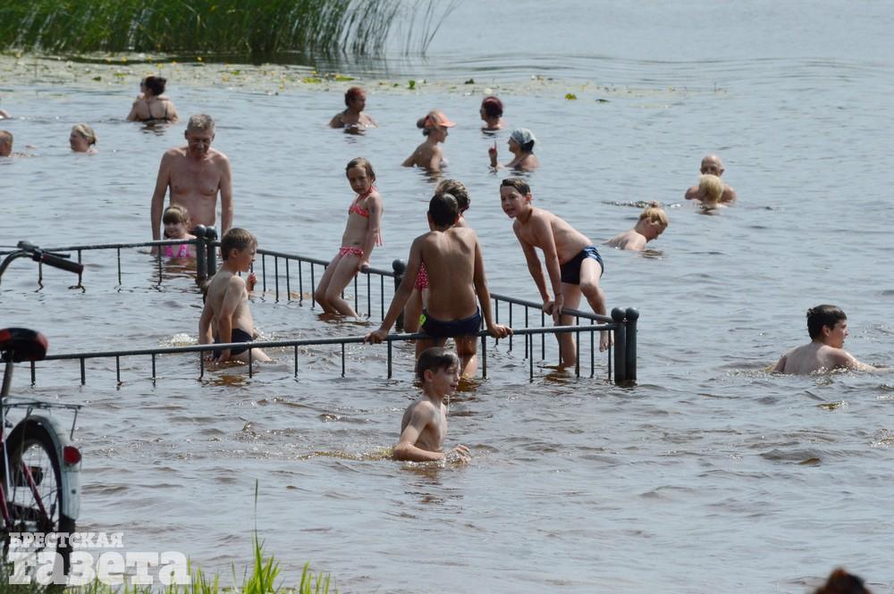 Несмотря на то, что на дворе будний день, дети вовсю резвятся на городских пляжах. Им повезло — у детей школьные каникулы.
