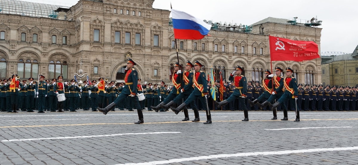 Обращает на себя внимание и внешняя атрибутика празднования, где советские красные флаги и цвета георгиевских лент почти вытеснили государственный российский триколор. Если просмотреть подобные парады прошлых лет – там нет столь тотального красного цвета. Рашизм (о котором шла речь в одной из наших предыдущих публикаций), по сути, подмял под себя российскую государственность. Это очень символично.