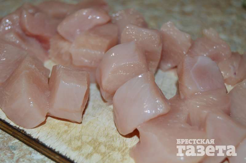 Готовим: Куриное филе порежьте на кубики.