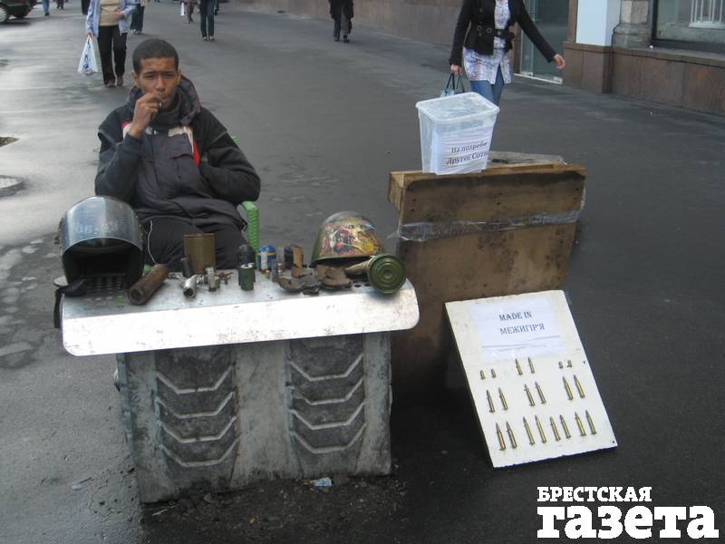 Перед отъездом в Киев я наслушался от знакомых и родственников о том, что в украинской столице идет война, город стоит чуть ли не в руинах, а на улицах рыщут фашиствующие молодчики, готовые линчевать всякого, сказавшего «спасибо» вместо «дякую». Ничего этого, конечно же, нет. Город живет своей обычной жизнью. Если не следить за новостями, то, приехав в Киев, никогда не догадаешься, что на главной площади страны до сих пор находятся несколько сотен вооруженных людей, а сама площадь превратилась в укрепленный лагерь, члены которого уже имеют вполне реальный боевой опыт.