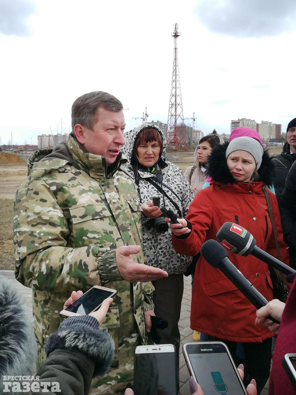 Вместе с журналистами в посадке деревьев участвовали и представители городской вертикали во главе с председателем горисполкома Александром Рогачуком. После завершения работы он провел короткую пресс-конференцию на свежем воздухе и ответил на вопросы представителей СМИ.