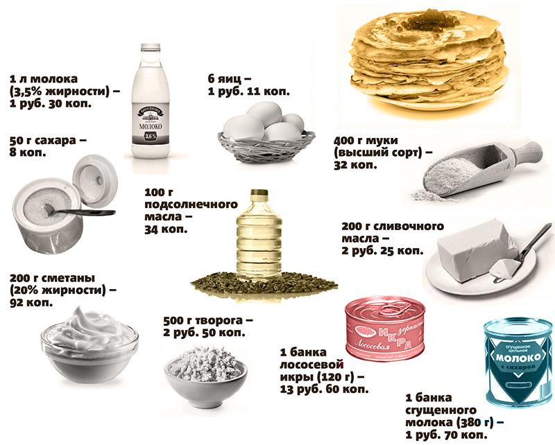 Конечно, можно обойтись и без начинки или выбрать одну — более скромную. А можно и вовсе не заморачиваться и купить готовые блины с наполнителями или без. Последние можно найти в брестских магазинах по цене 4,5 рубля за килограмм, а те же блины-полуфабрикаты со сгущенным молоком обойдутся где-то в 4,8 рубля за кг.