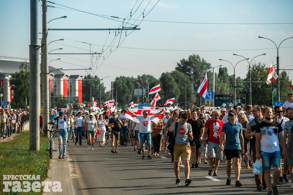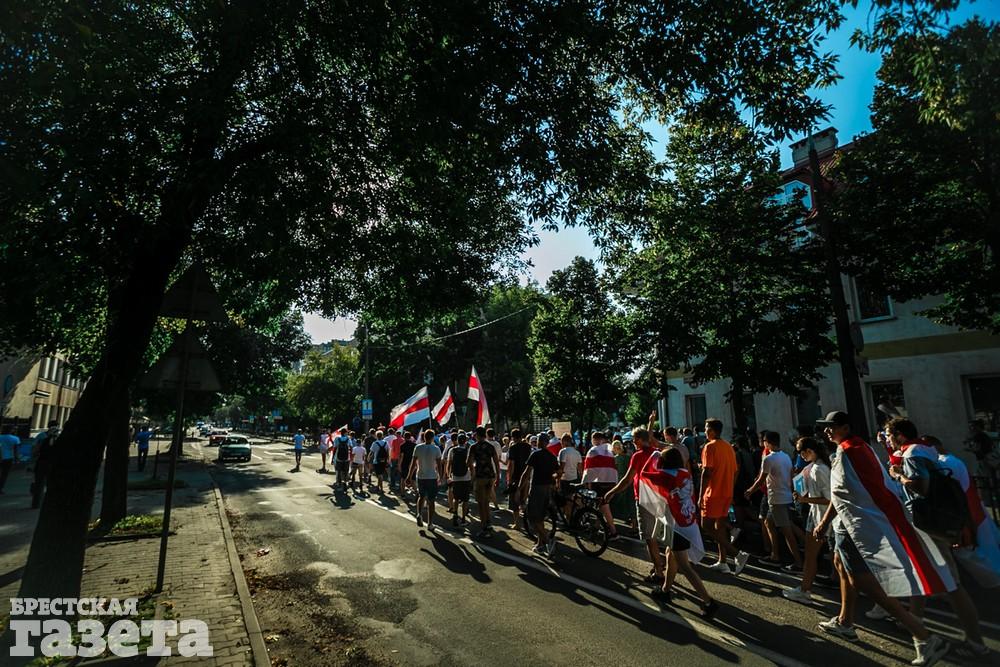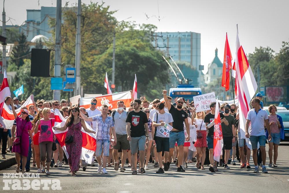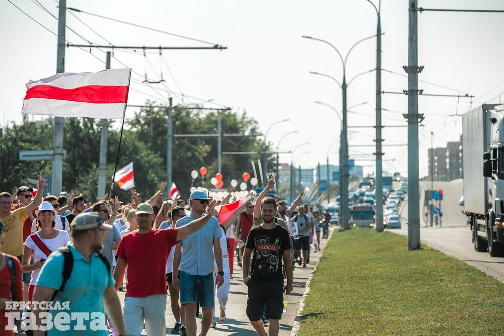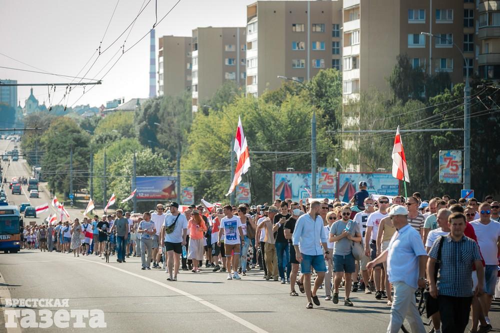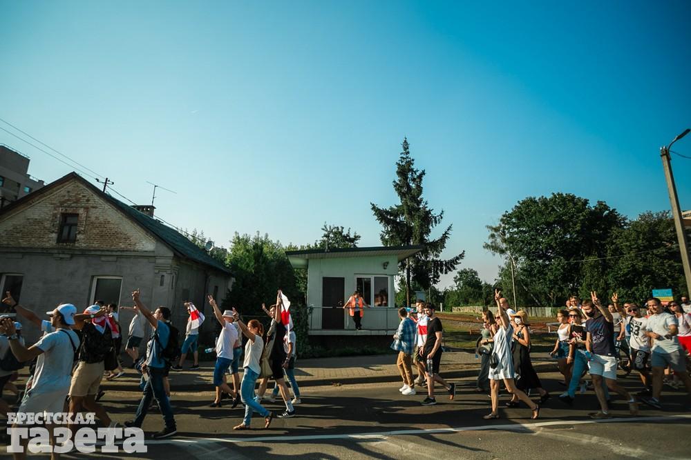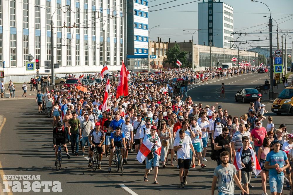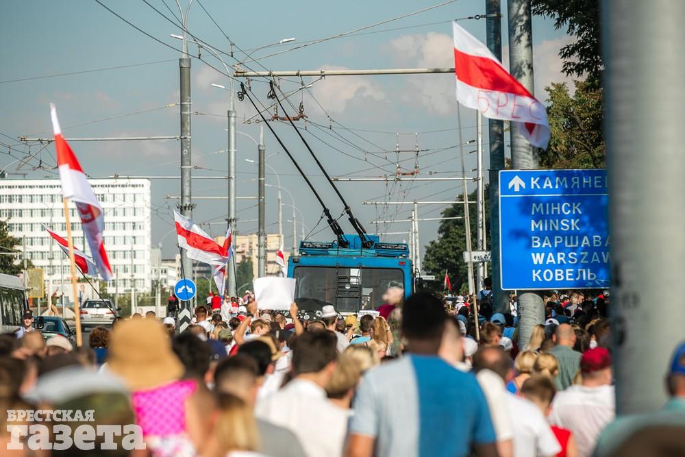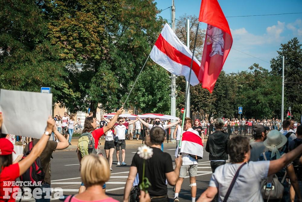 В этот день колонна протестующих выбрала новый маршрут для шествия. Из центра люди поднялись на Кобринский путепровод, пошли по улице Московской и свернули на Пионерскую. Оттуда они вышли на Пушкинскую, через которую вернулись в центр.