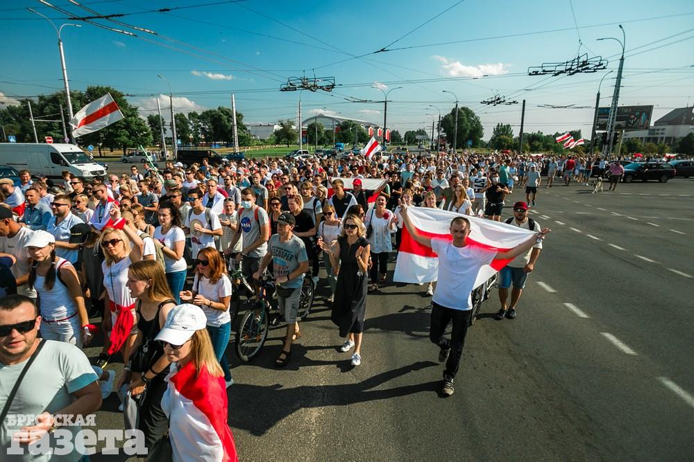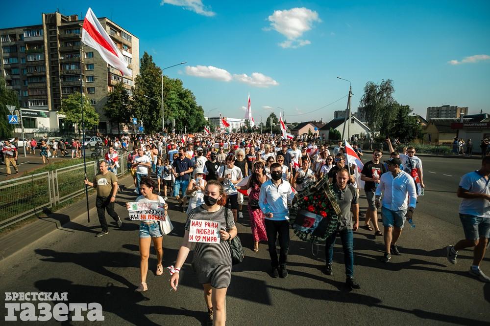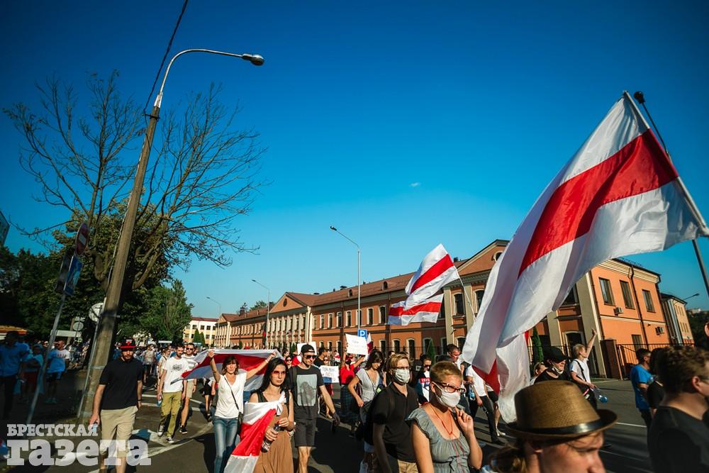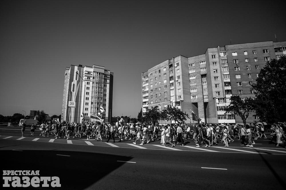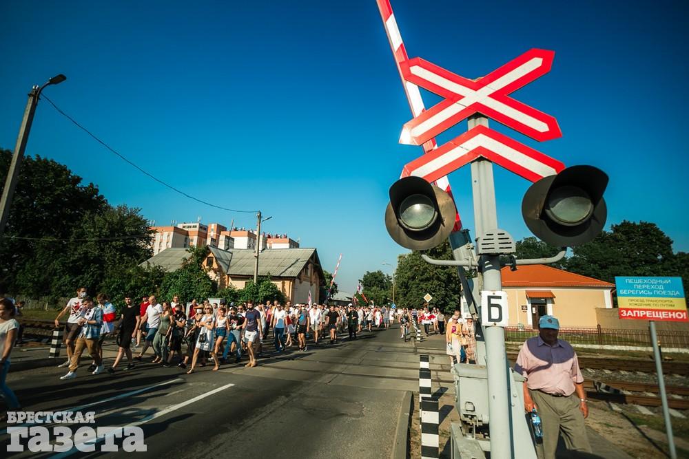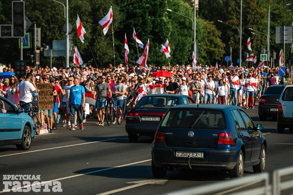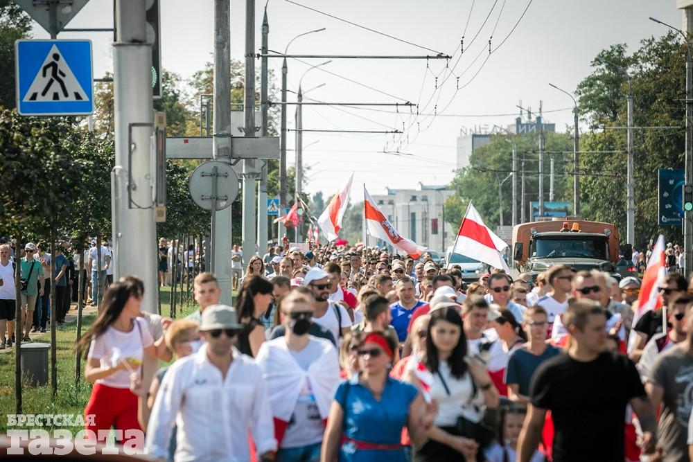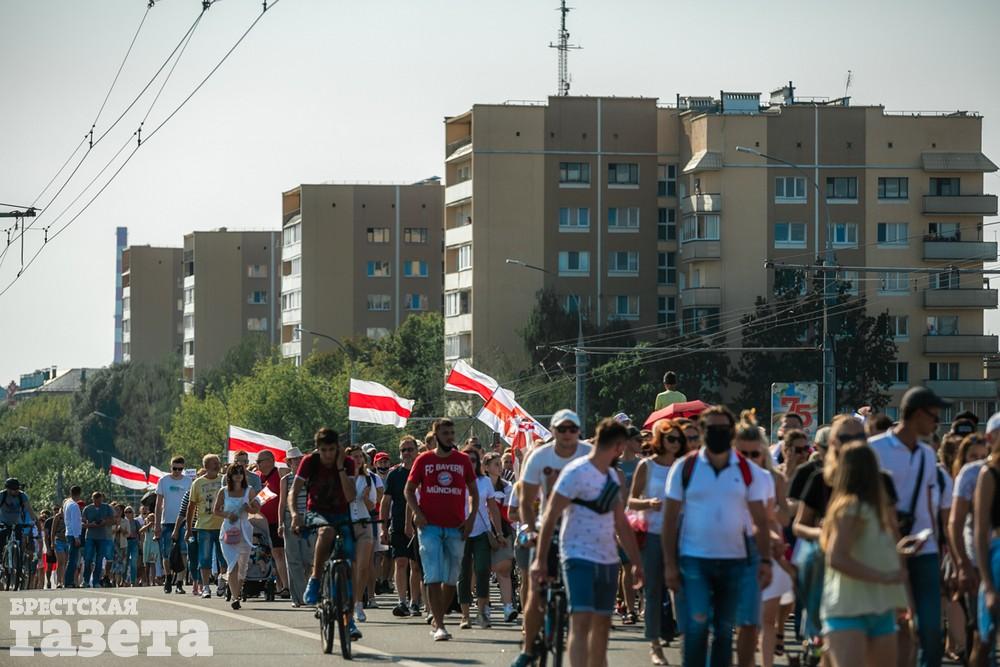 В этот день колонна протестующих выбрала новый маршрут для шествия. Из центра люди поднялись на Кобринский путепровод, пошли по улице Московской и свернули на Пионерскую. Оттуда они вышли на Пушкинскую, через которую вернулись в центр.