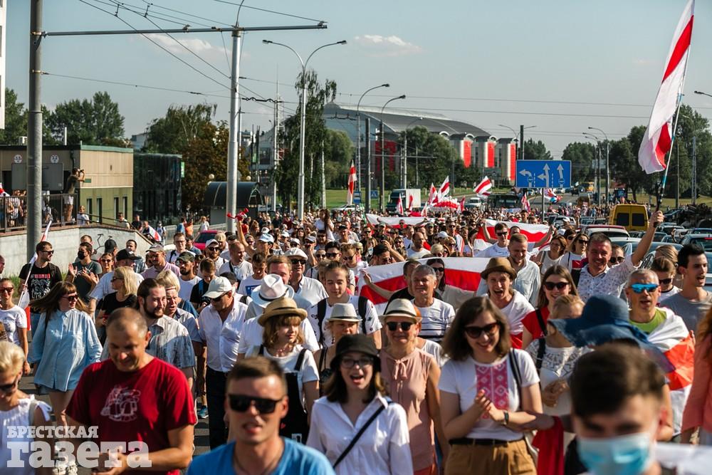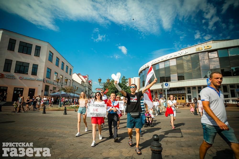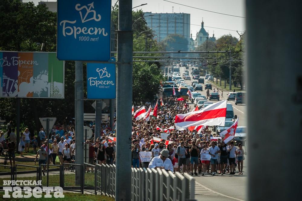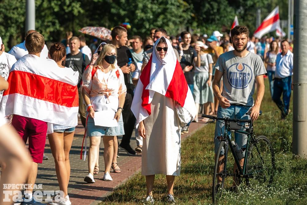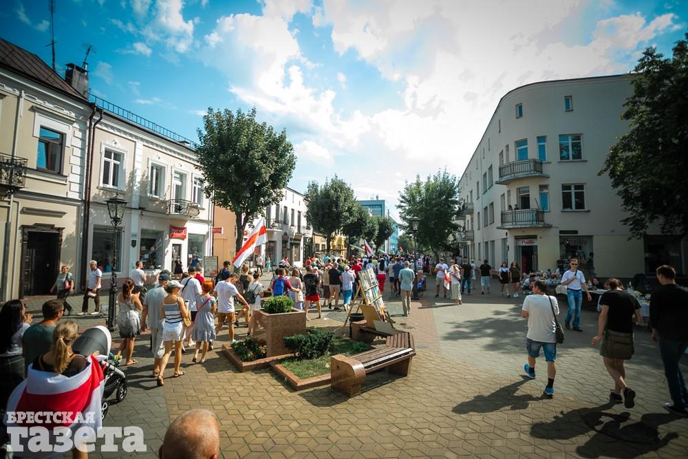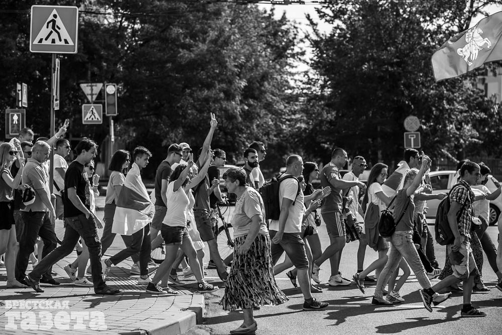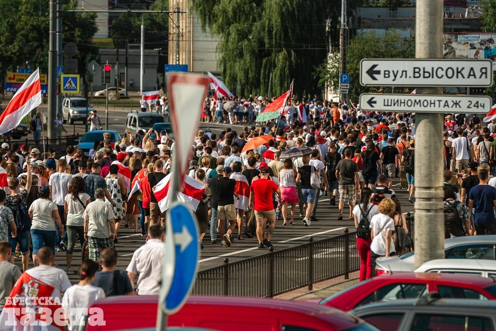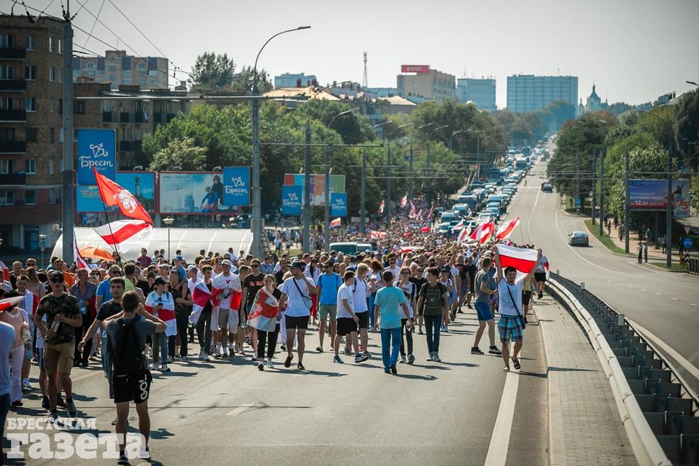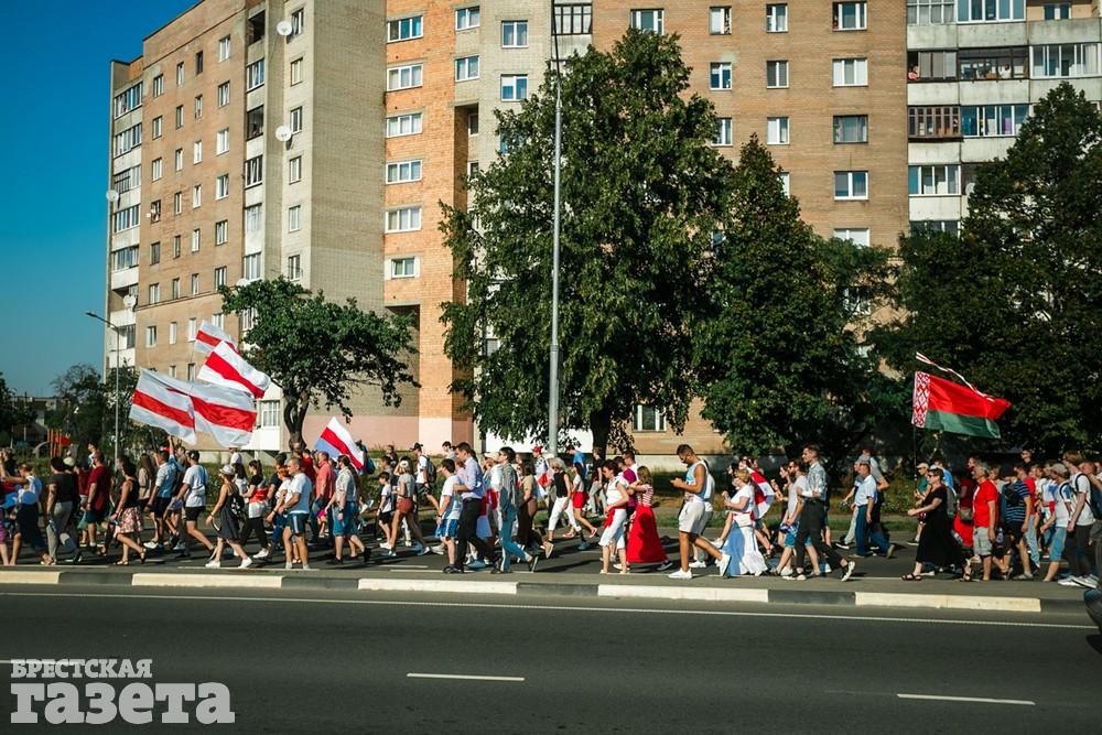 В этот день колонна протестующих выбрала новый маршрут для шествия. Из центра люди поднялись на Кобринский путепровод, пошли по улице Московской и свернули на Пионерскую. Оттуда они вышли на Пушкинскую, через которую вернулись в центр.