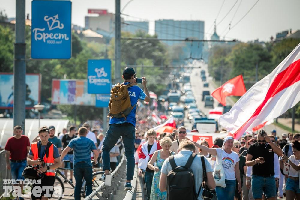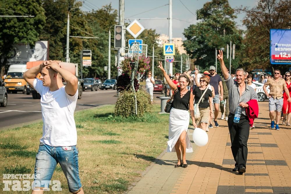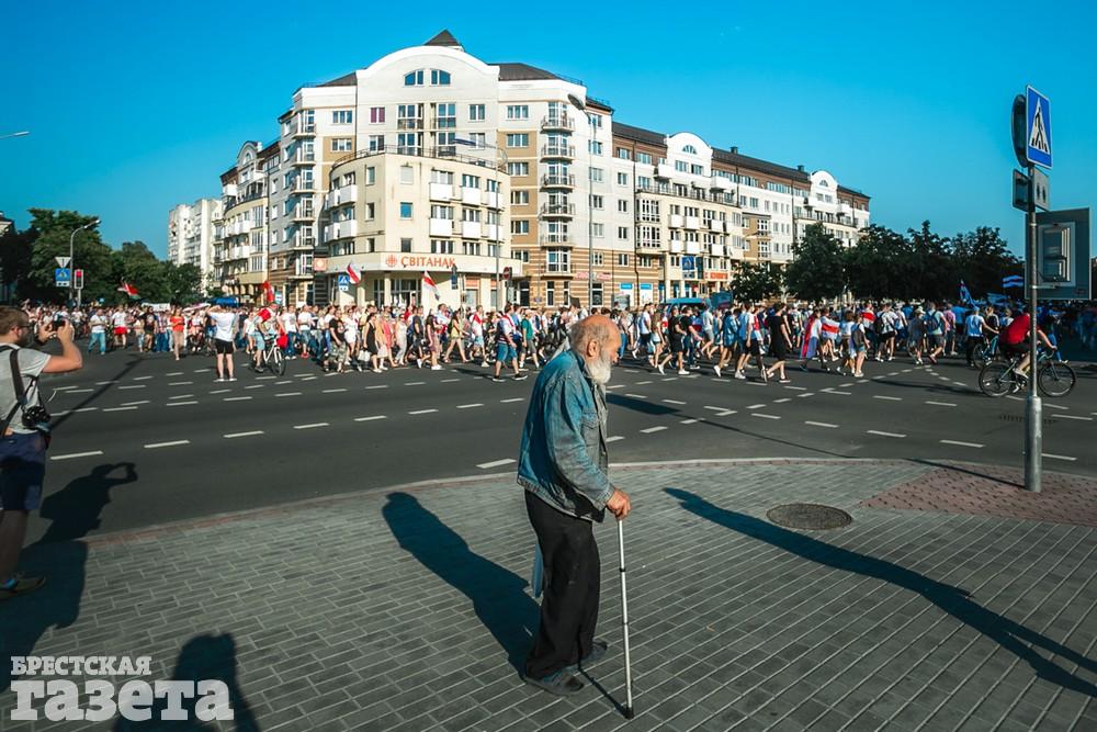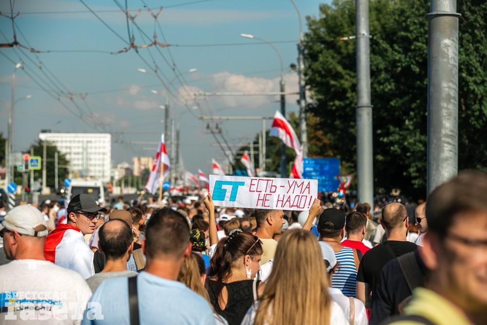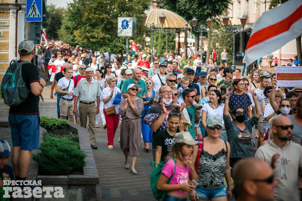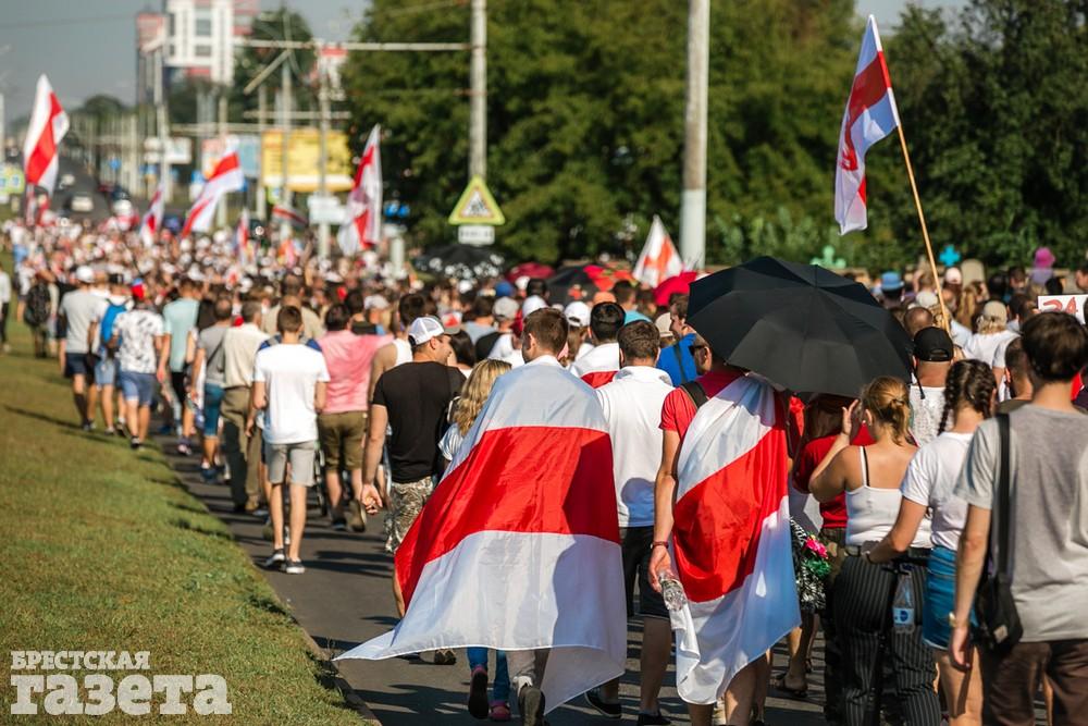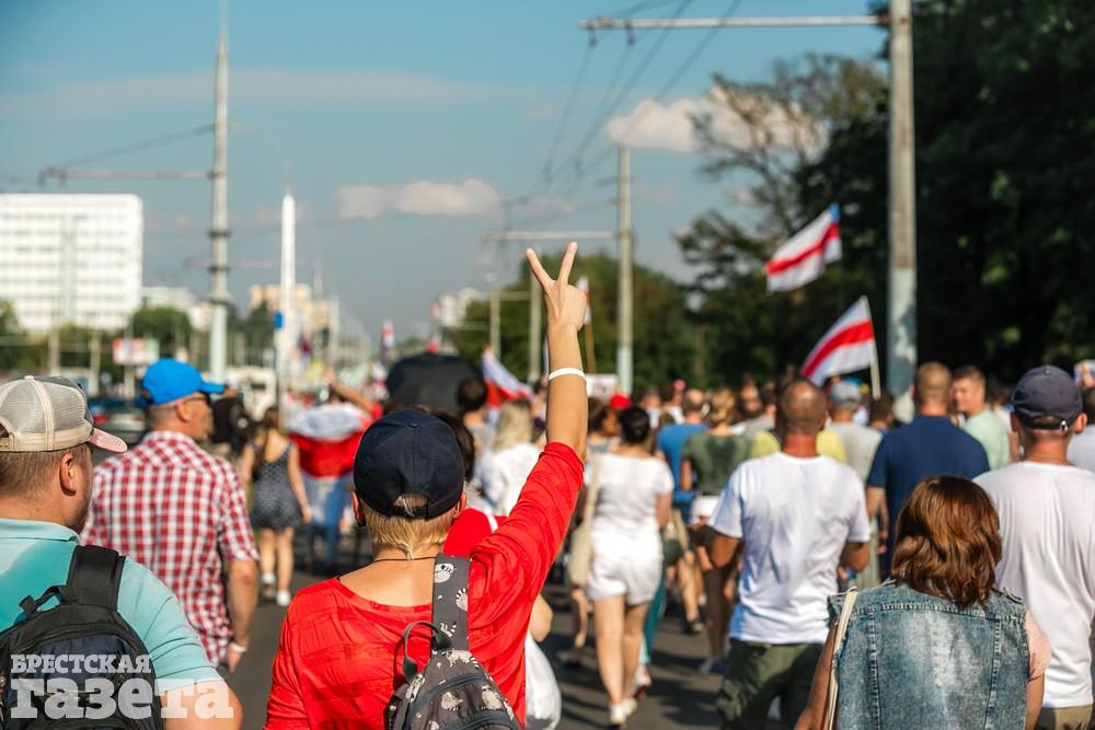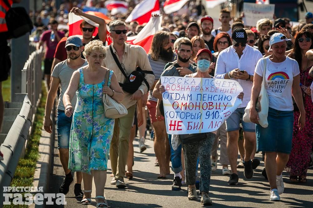 В этот день колонна протестующих выбрала новый маршрут для шествия. Из центра люди поднялись на Кобринский путепровод, пошли по улице Московской и свернули на Пионерскую. Оттуда они вышли на Пушкинскую, через которую вернулись в центр.