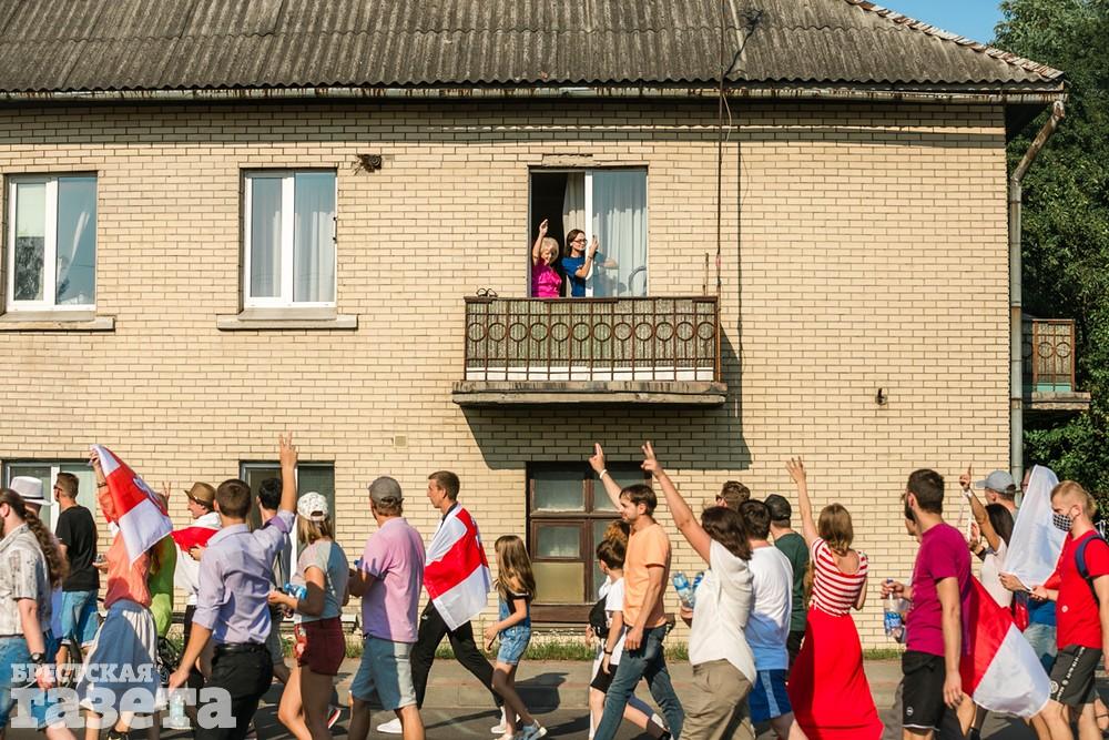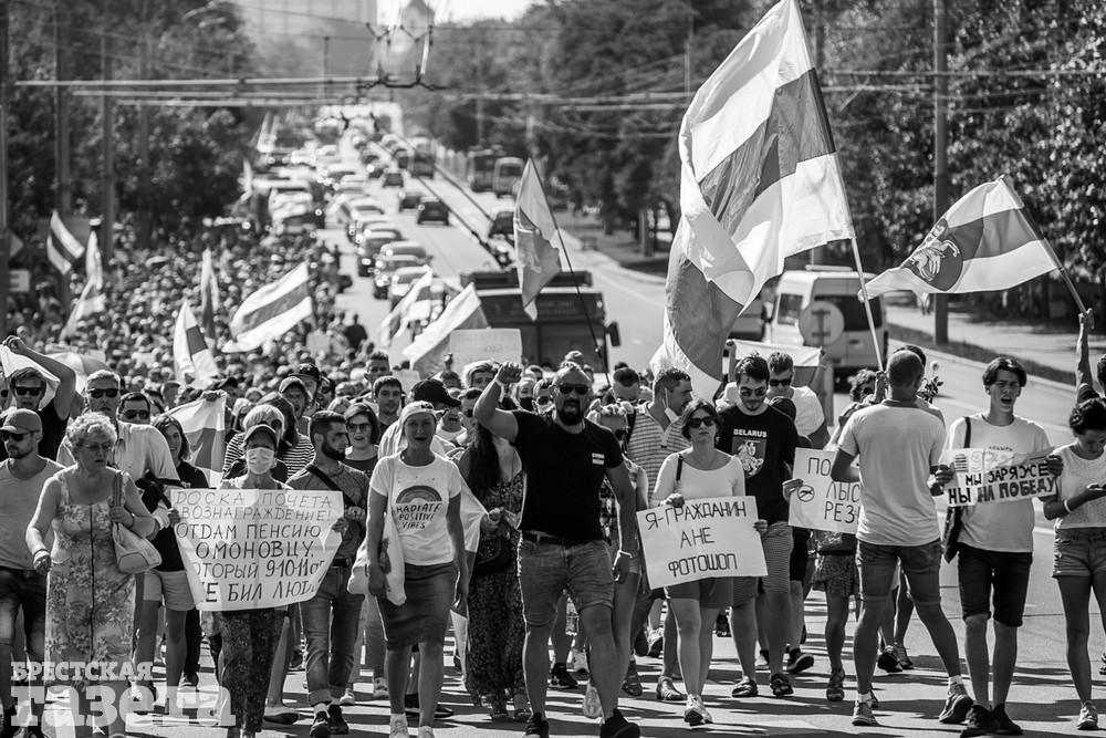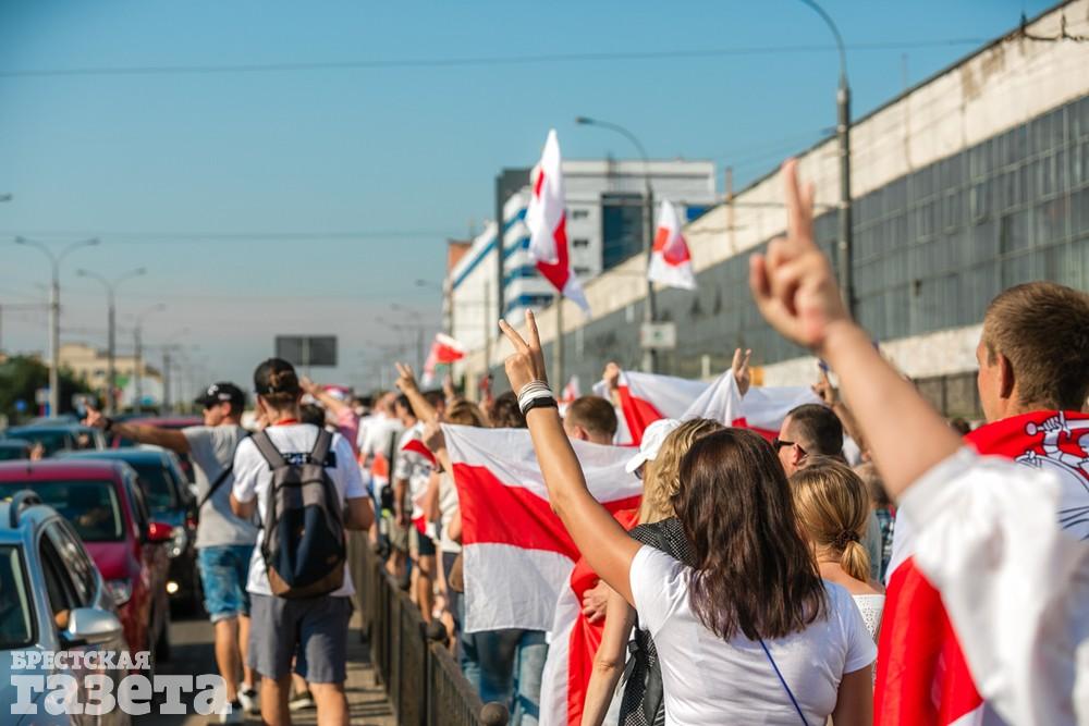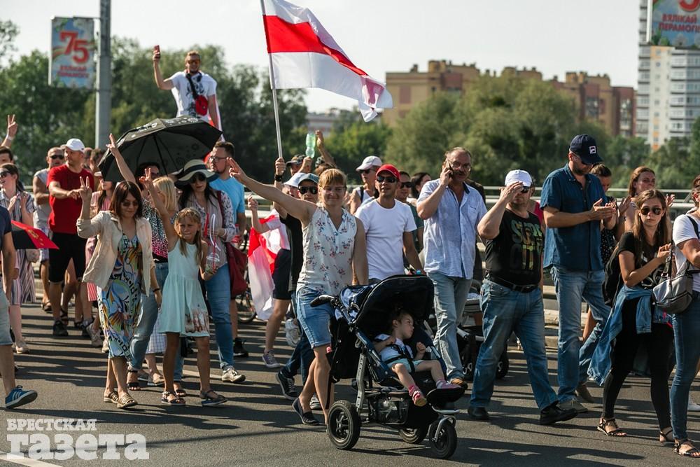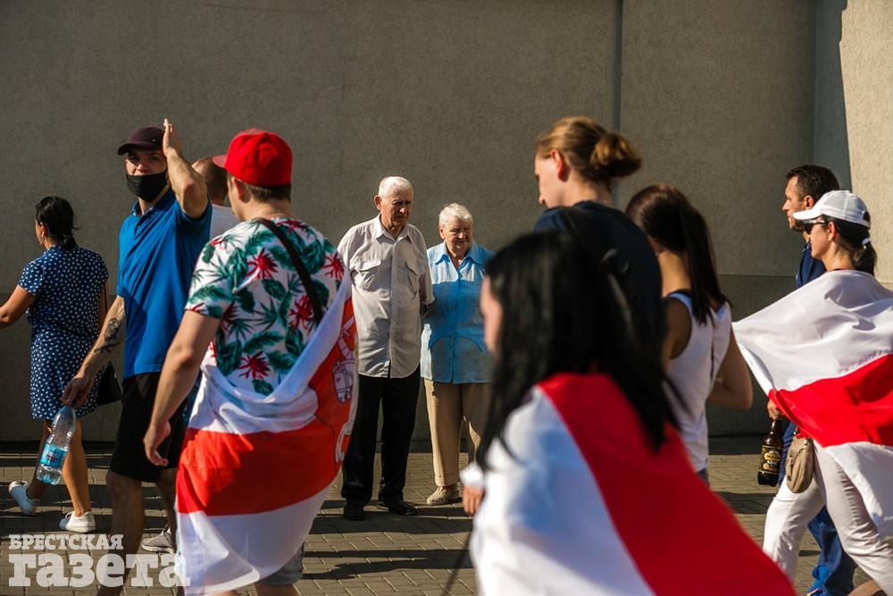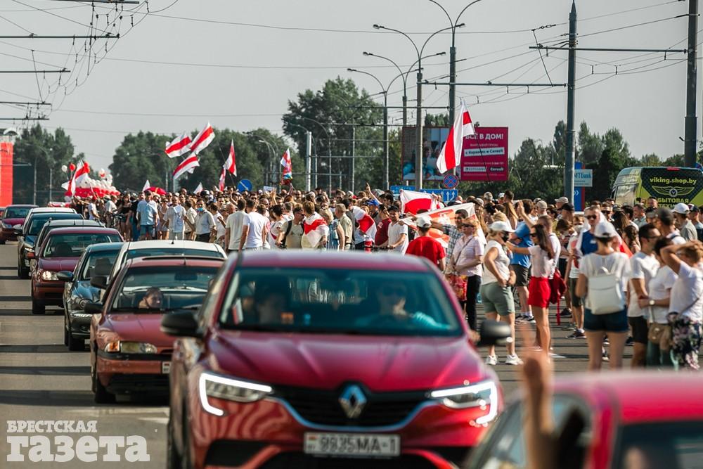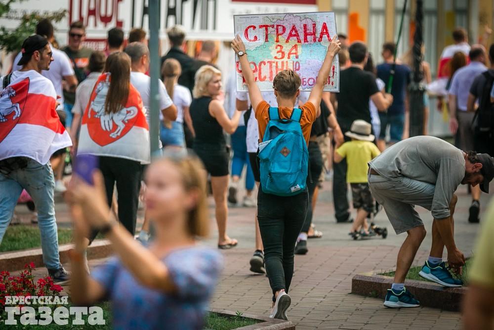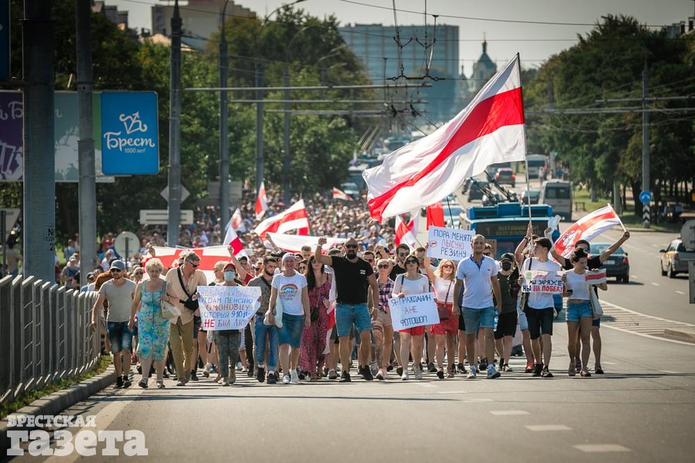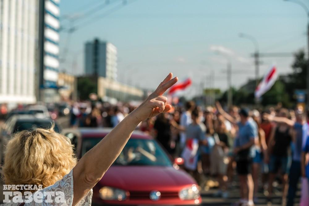 В этот день колонна протестующих выбрала новый маршрут для шествия. Из центра люди поднялись на Кобринский путепровод, пошли по улице Московской и свернули на Пионерскую. Оттуда они вышли на Пушкинскую, через которую вернулись в центр.