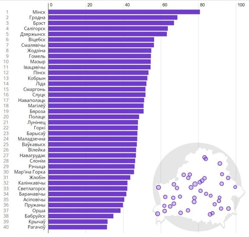 Однако в ситуации, когда чиновники засекретили многую статистику, а полноценные исследования по теме уровня жизни в беларуских городах отсутствуют, этот рейтинг важен для понимания ситуации.