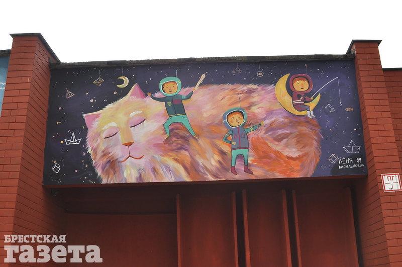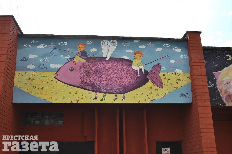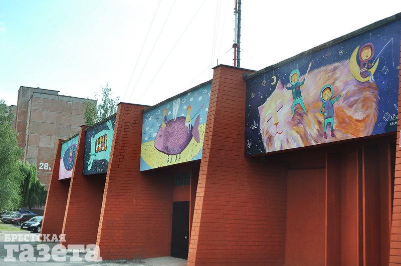 Художница Леонида Василькович украсила теплопункт Брестского котельного хозяйства по ул. Ленинградской. На стене здания, которая выходит на детский центр медицинской реабилитации «Тонус», появились рисунки людей и животных.