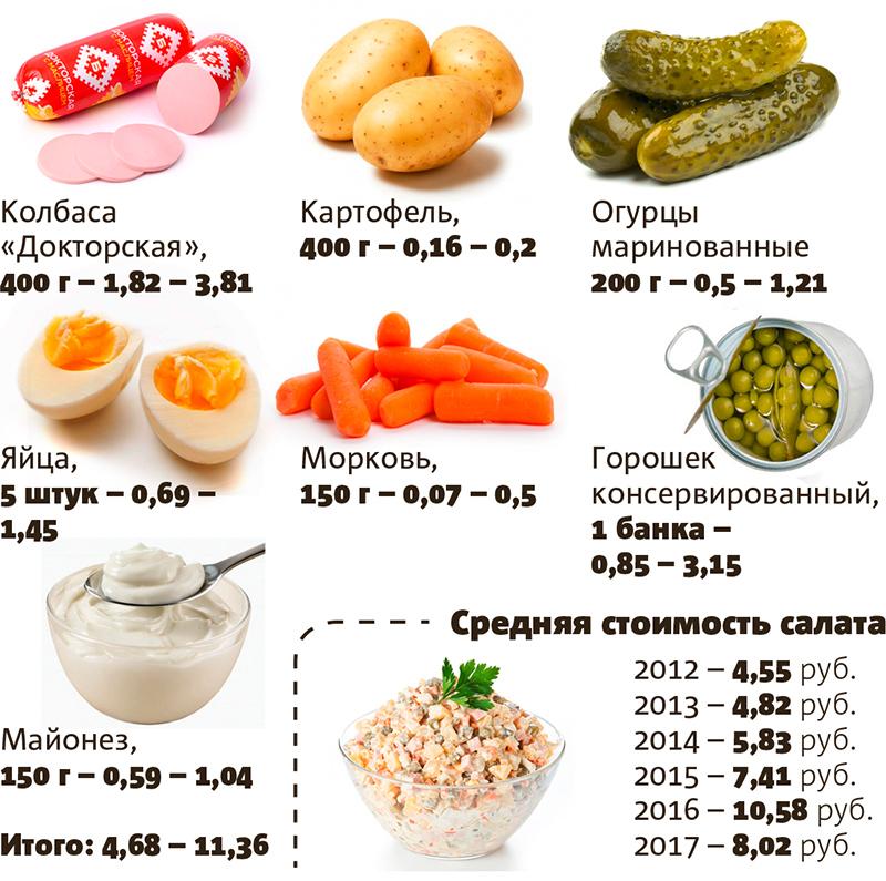 Индекс оливье: за пять лет салат подорожал более чем в 2 раза