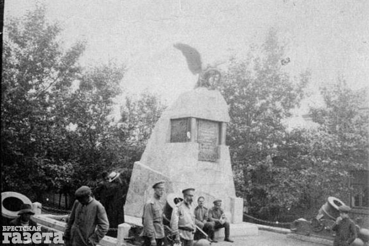 В годы Первой Мировой войны памятник выглядел иначе, чем теперь. Оккупационные власти сняли мраморные таблички и двуглавого орла. В период межвоенной Польши на постаменте на месте орла был установлен бюст Тадеуша Костюшко. В послевоенные годы памятник отреставрировали, бюст сняли и вернули на место орла. Нетронутыми остались четыре артиллерийские орудия. Остается загадкой, почему их не демонтировали в Первую Мировую войну.