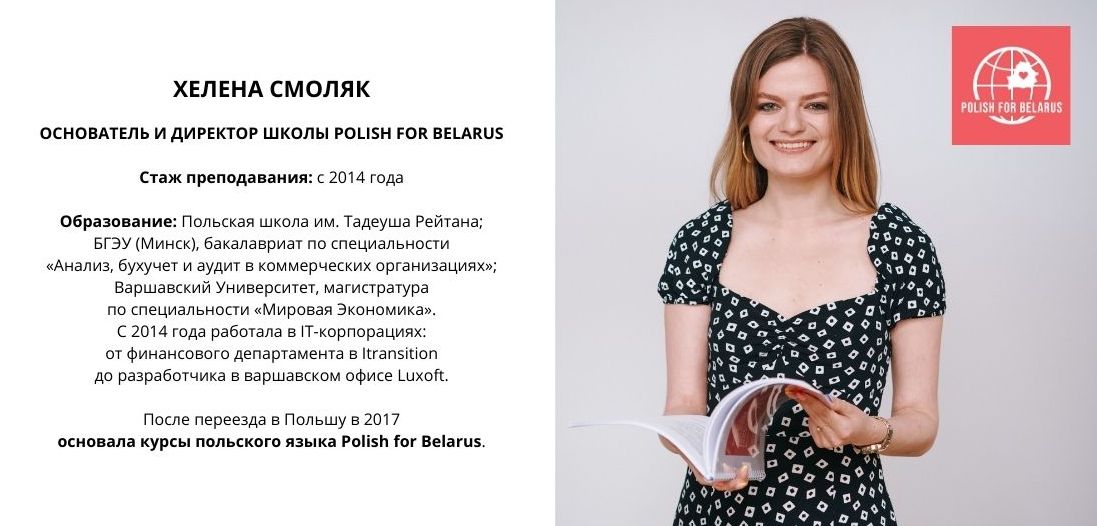 * Представляем наших партнеров — школу польского языка Polish for Belarus, ее основателя и директора Хелену Смоляк.