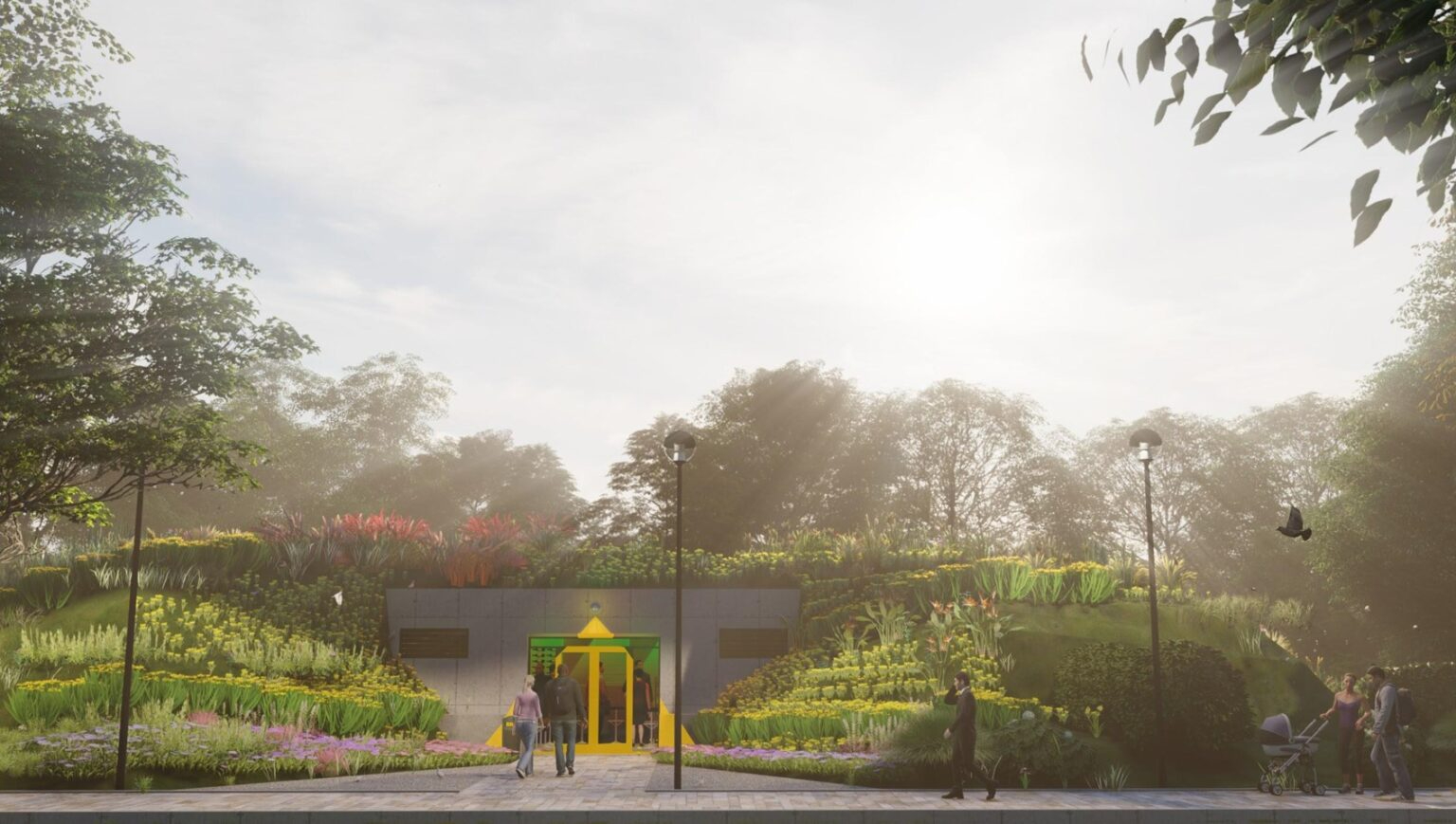 В отличие от двух вышеописанных проектов, студенты-архитекторы концепции Land Guard предложили очистить сквер от образовавшихся за последние годы диких зарослей. Оставить планировалось лишь аллеи и особо красивые экземпляры взрослых деревьев. Идея проекта – сформировать сквер-сад. Поэтому здесь мало покрытий и много зеленых насаждений. Одна из особенностей проекта – геопластика (искусственное формирование возвышенностей, холмов с перепадом высот до двух метров).