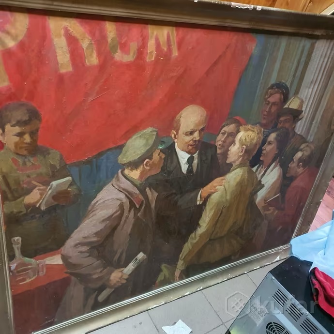 Художник – некто С.П. Алтаев. Продавец утверждает, что это главный художник Москвы в 1960-1966гг. Хотя картина была написана в 1976 году. Цена вопроса – всего каких-то 7500 беларуских рублей. Как тебе такое, Илон Маск? $3000 за Ленина.