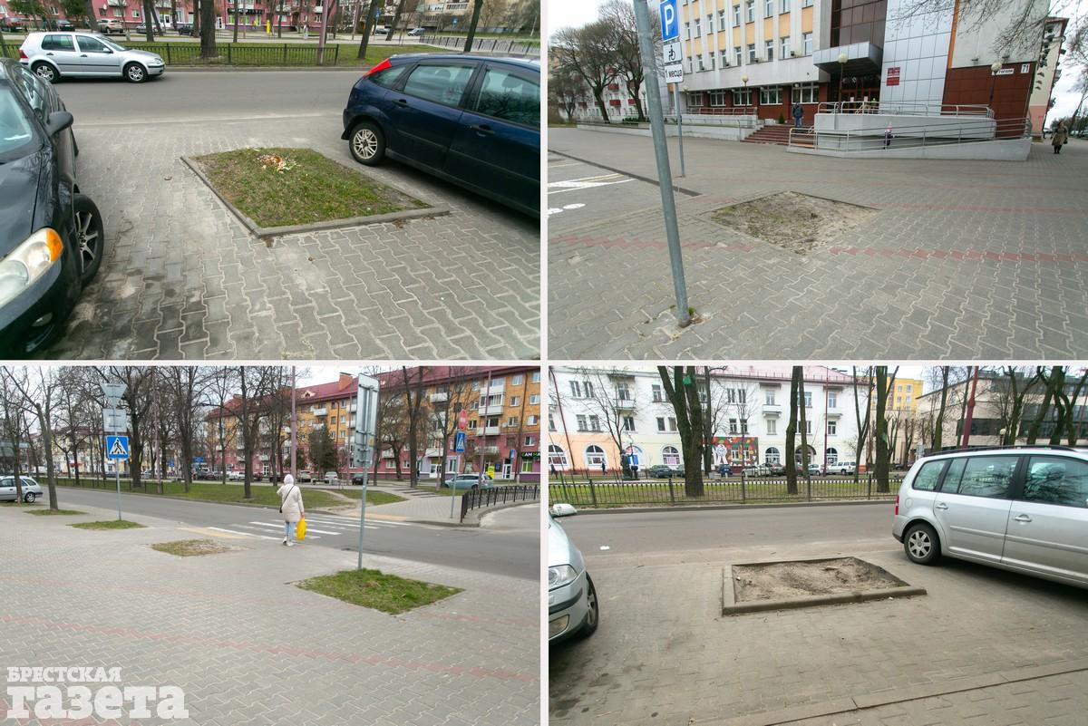 В центре Бреста таких «квадратов неМалевича» можно насчитать десятки, если не сотни. Только по улице Гоголя мы нашли 27 «немых упреков» коммунальникам или дорожным службам. А ведь до нашей «инспекции» здесь прошло мероприятие по посадке молодых деревьев.