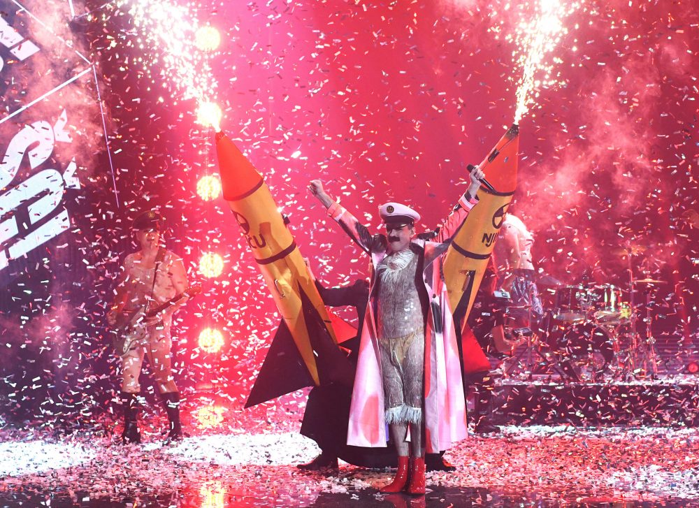 После солист запел строчки «Этот мелкий психопат. Подлый мелкий психопат. Крокодил-психопат. Мама, я иду воевать» — в этот момент на сцену вышел еще один участник коллектива и вынес две импровизированные ракеты. Заканчивается песня фразой «Мама, я иду воевать. Щ!».