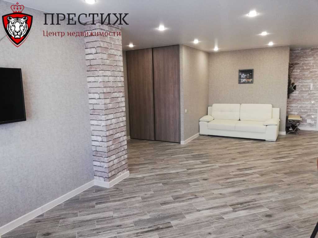 Однокомнатную квартиру-студию продают в новом кирпичном доме (2019 год постройки) на улице Гоголя . В квартире сделан качественный ремонт. Кухонного гарнитура нет, что позволяет доработать стильное жилье под свой вкус. Санузел совмещенный, лоджия застеклена, стены оклеены обоями со вставками ламината, на потолке — снежка.