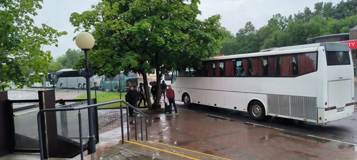«21:30 вчера выезд из Минска. 00:40 приехали на нашу границу. 7:35 проехали польскую. 10:35 были в Варшаве. Телефон проверяли у одного пассажира, проблем не возникло, все вернулись в автобус»