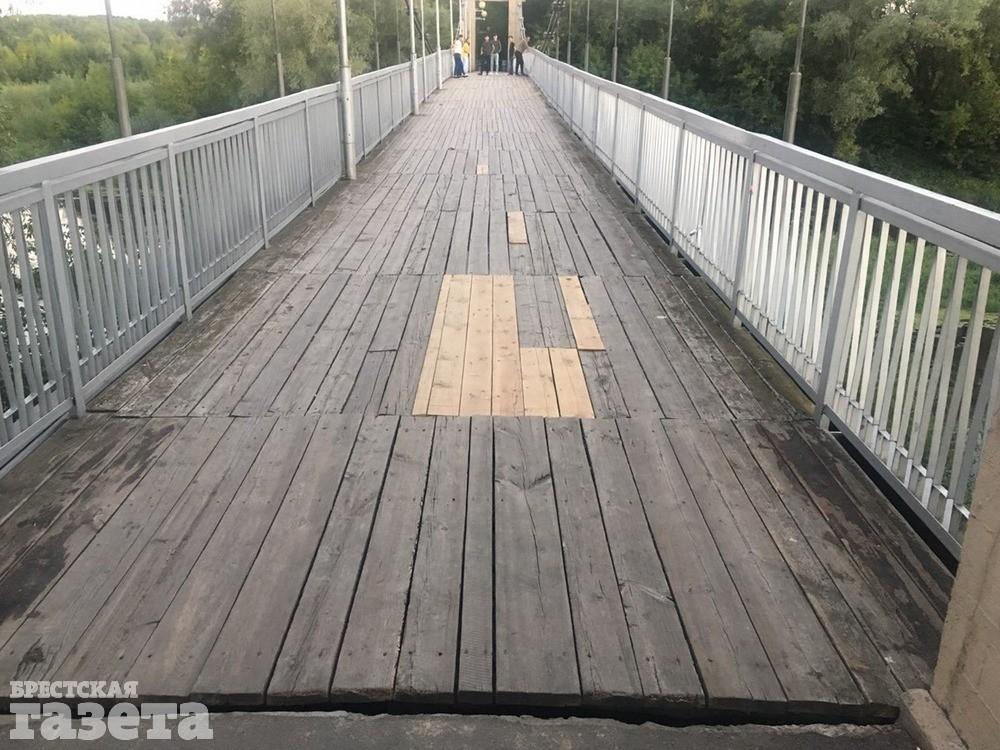 Напомним, 5 августа «БГ» написала о том, что подвесной мост возле Брестской крепости обветшал и требует ремонта. Меньше, чем через две недели мы обнаружили, что косметический ремонт произвели.