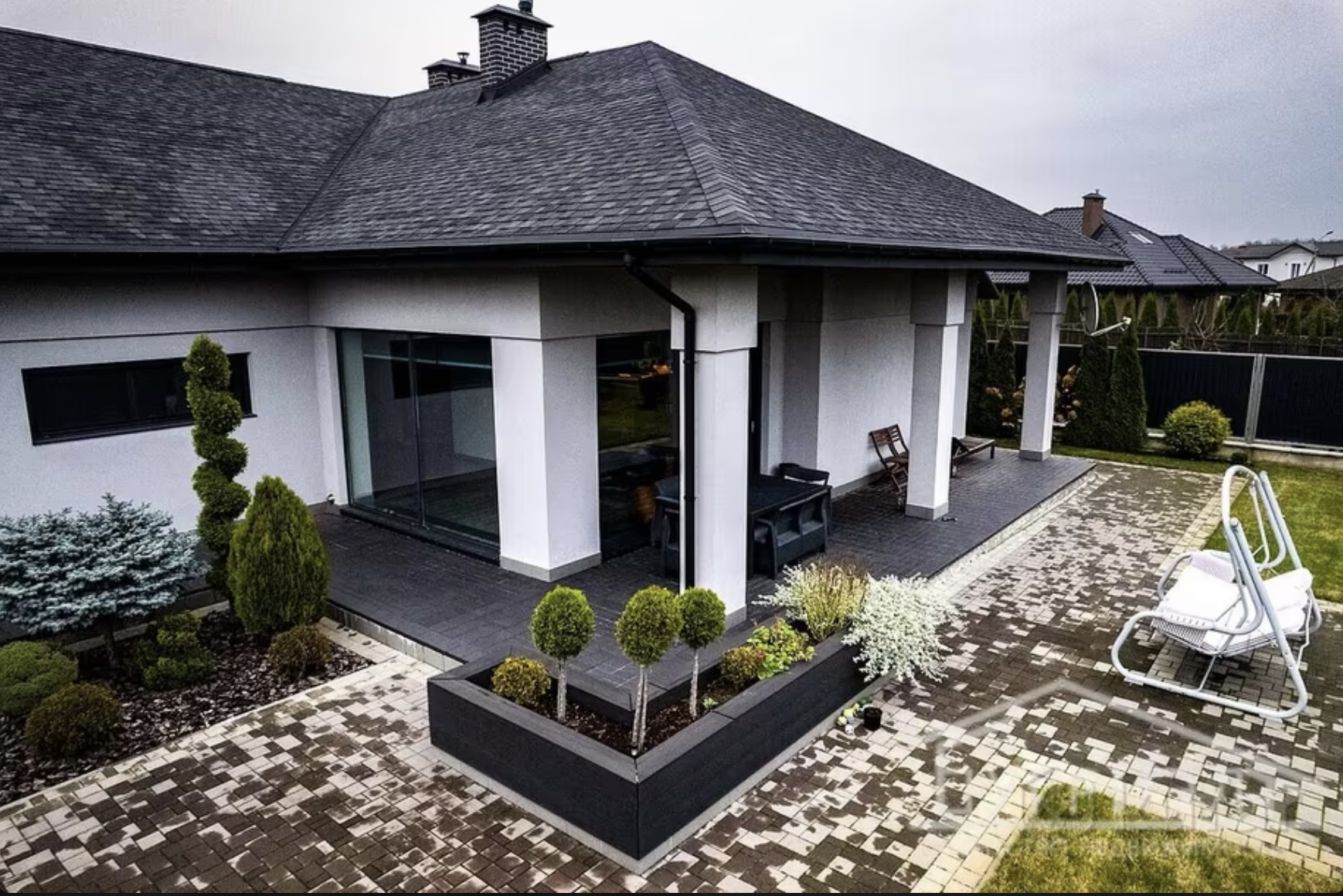 Двухэтажный жилой дом общей площадью 262,3 кв.м. с 4-мя комнаты и «полным фаршем». В доме есть подогрев пола, дубовая лестница, деревянные стеклопакеты, итальянская и испанская плитка. На втором этаже сауна, а под крышей можно сделать дополнительную комнату.