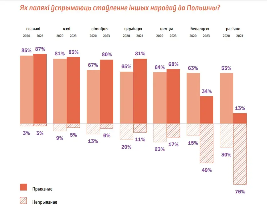 «Это настоящий крах прежнего восприятия страны поляками. Последние три года, и это понятно, принесли ухудшение восприятия польско-российских отношений, но изменение, произошедшее при этом в беларуско-польских отношениях, особенно заметно», – отмечают авторы доклада по результатам исследования.