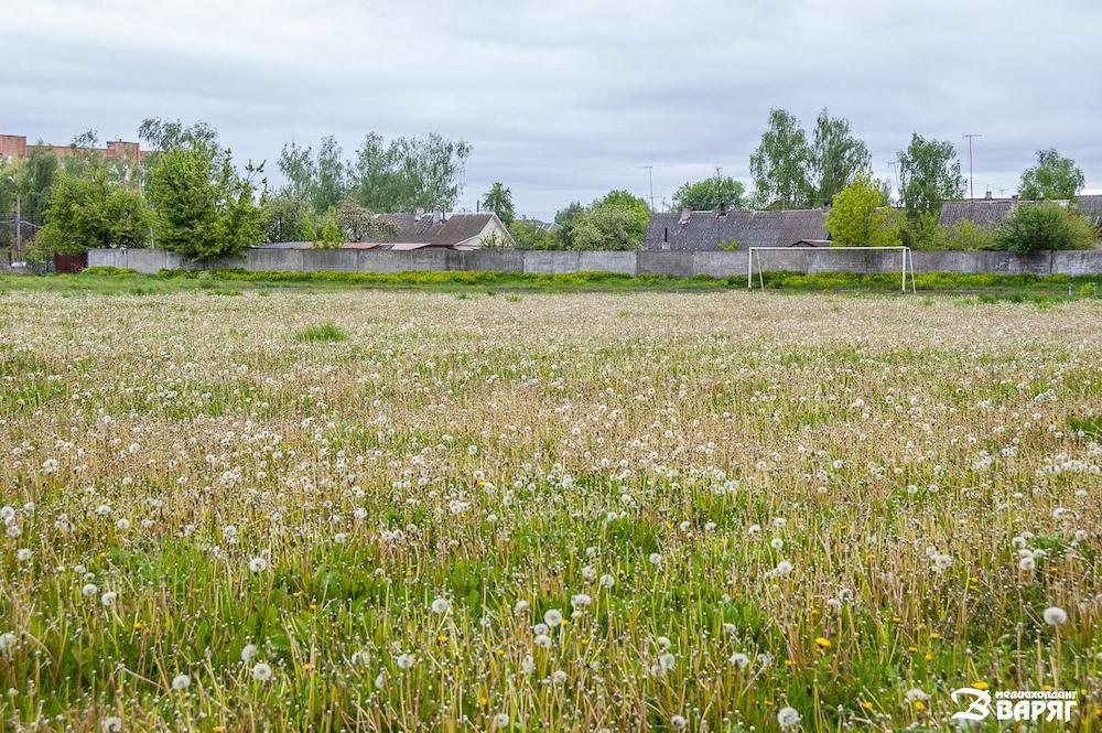 Поле на стадионе «Припять» в Пинске в 2019 году, где в июле 2021 зальют фундамент под теннисные корты, рапортовали местные СМИ. Фото:  Медиахолдинг «Варяг».