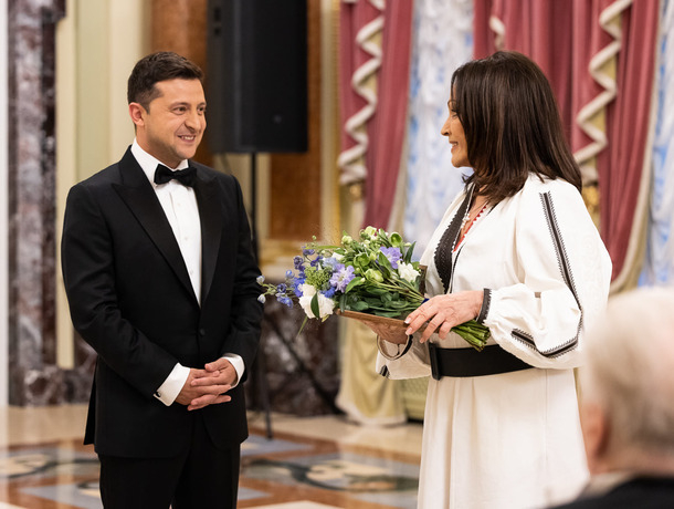 Президент Украины Владимир Зеленский вручает Софии Ротару государственную премию «Национальная легенда Украины»
